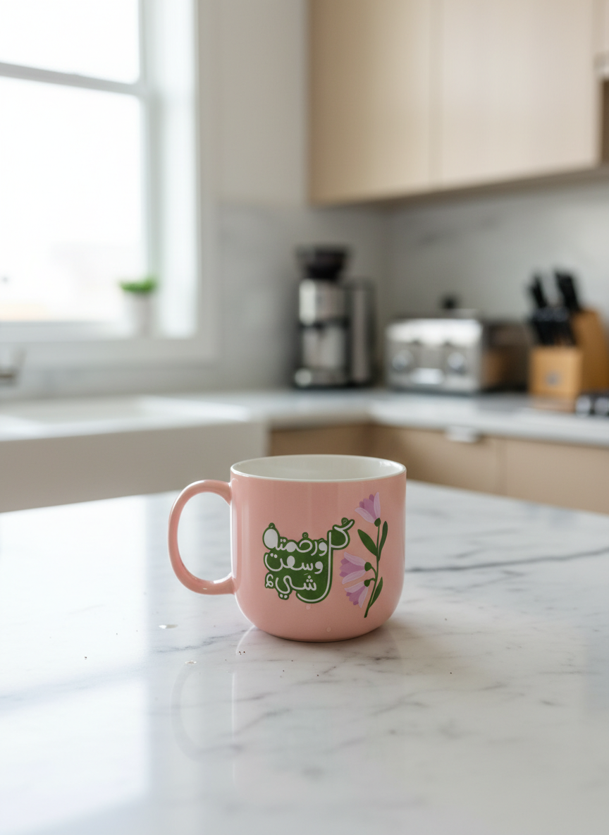جرعة تفاؤل وسكينة هاد الكوب عبارة عن راحة نفسية بحد ذاته! 🌸 تصميم ناعم بلون وردي مع وردة رقيقة، وبحمل أعظم وعد من رب العالمين.. “ورحمتي وسعت كل شيء”. بذكرك مع كل بداية يوم إنه مهما ضاقت، رحمة الله أوسع من كل شيء. قطعة أساسية لكل وحدة بتحب الأناقة والمعنى العميق اللي بيبعث الرضا بالقلب.